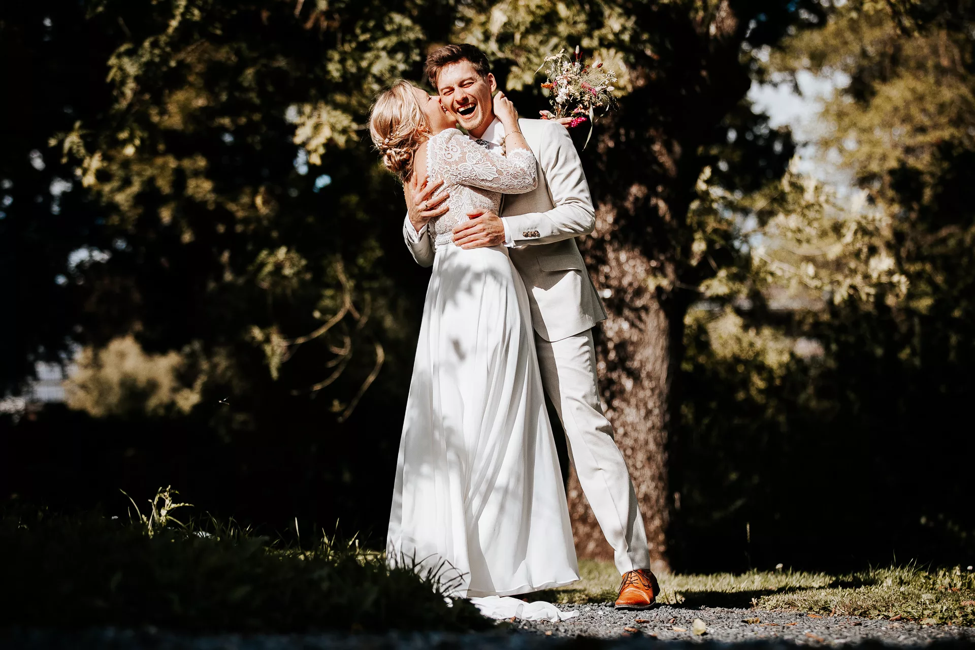 Abends hat es dann wie aus Eimer geregnet und wir mussten uns zwangsweise nach drinnen verziehen – aber da war der Großteil der Hochzeitsfotos schon im Kasten. Da ich den nächsten Tag direkt in Düsseldorf ein Vorgespräch mit einem anderen Brautpaar hatte bin ich kurzerhand die Nacht im Hotel geblieben.